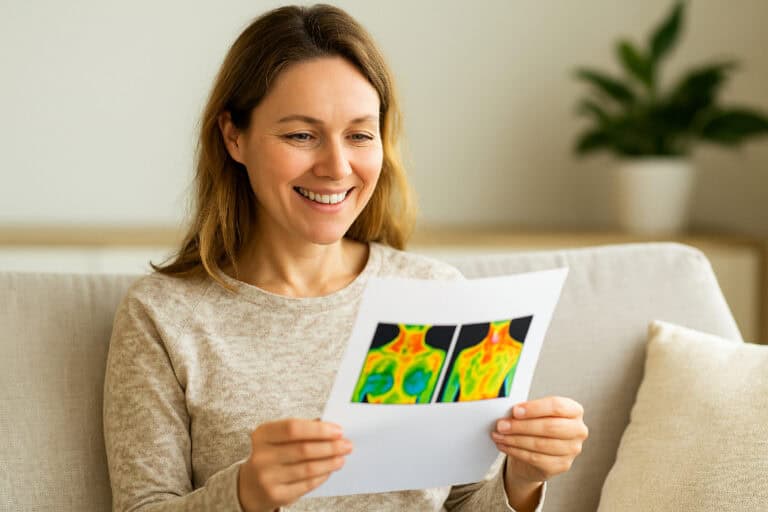 Thermography doesn’t involve any poking, prodding, or radiation. Just a specialized infrared camera that captures your body’s heat map. It’s quick, painless, and safe to do regularly.